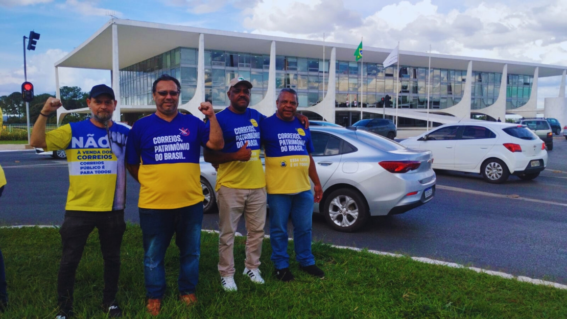 Representantes do Comitê Nacional em Defesa dos Correios realizaram ato em frente ao Palácio do Planalto com o objetivo de pressionar o governo federal pela retirada das ações que foram encaminhadas para o Supremo Tribunal Federal (STF).