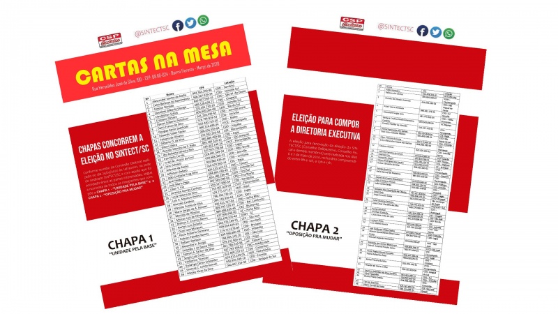 Conheça as chapas e os nomes dos trabalhadores que estão
