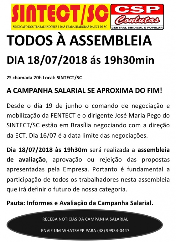 Todos e todas à Assembleia dia 18/07/2018